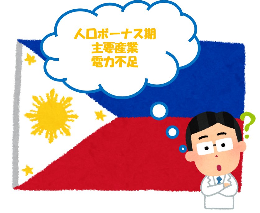 フィリピンでは慢性的な電力不足が問題となっており、2021年になっても停電が頻発しています。今後の経済成長に伴って電力需要がますます増大すると予想されるため、原子力発電所の導入までもが議論されています。